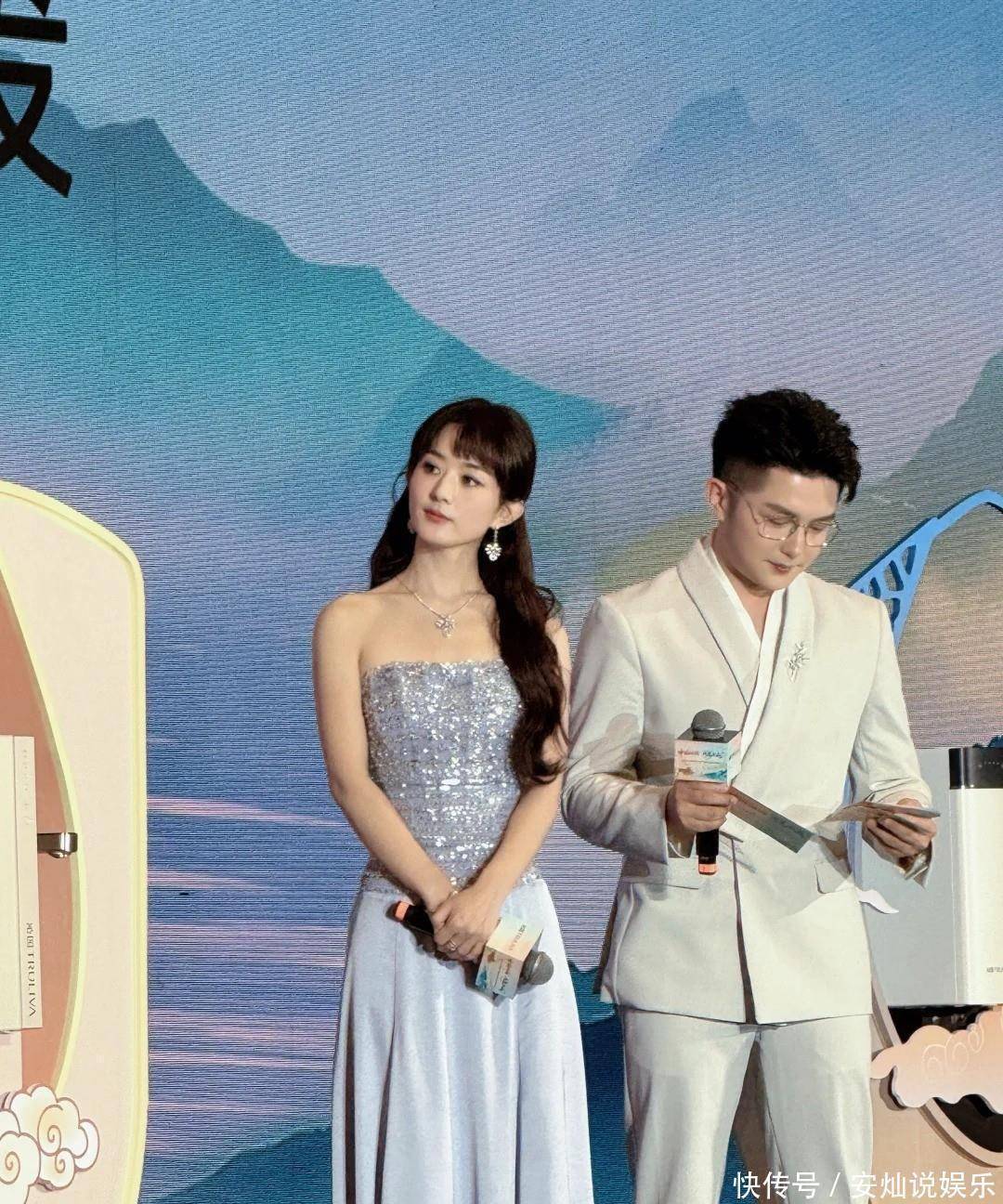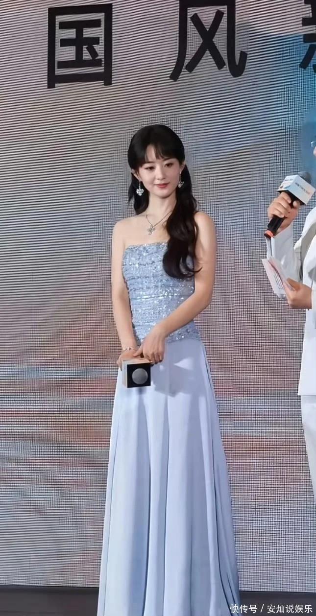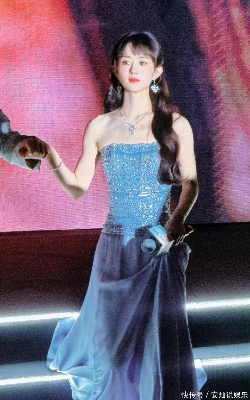没想到最绝的竟然是赵丽颖,她选的礼服颜色和唐嫣的一样,都是蓝色系的。